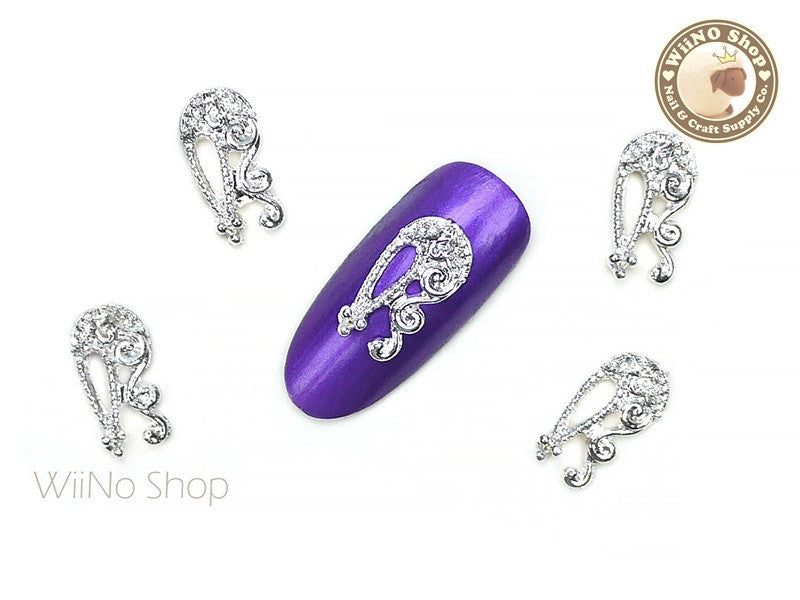 Silver Rosa Vintage Hollow Pattern Nail Metal Charm - 2 pcs