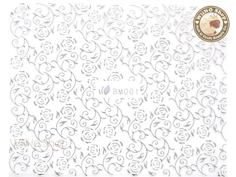 Silver Rose Pattern Adhesive Nail Sticker Nail Art - 1 pc (BM001S)