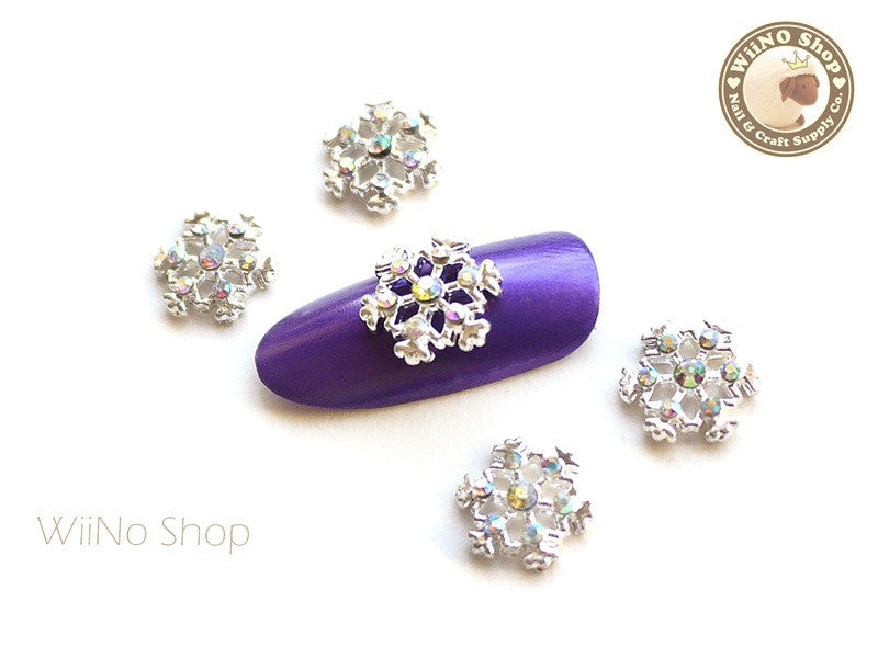 Silver Crystal Snowflake Nail Metal Charm - 2 pcs