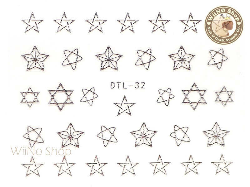 Silver Drawing Star Nail Art Sticker - 1 pc (DTL-32S)