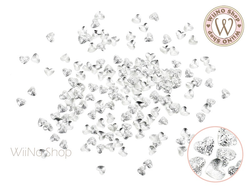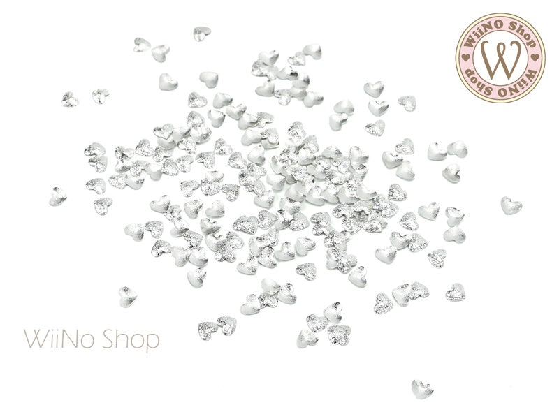 Silver Textured Heart Metal Studs - 25 pcs (2.2mm/3mm)