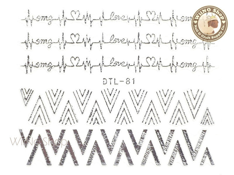 Silver V Heartbeat Pattern Nail Art Sticker - 1 pc (DTL-81S)