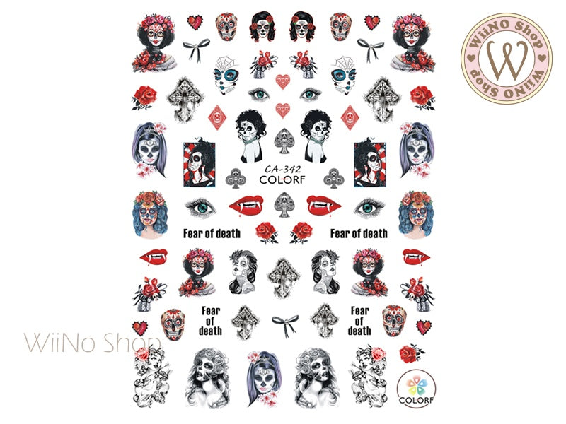 Skull Beauty Adhesive Nail Art Sticker - 1 pc (CA-342)