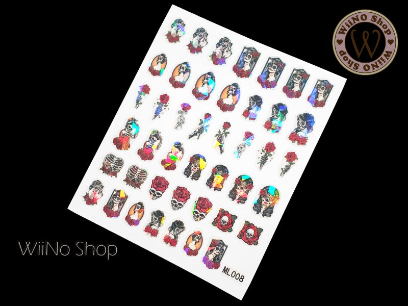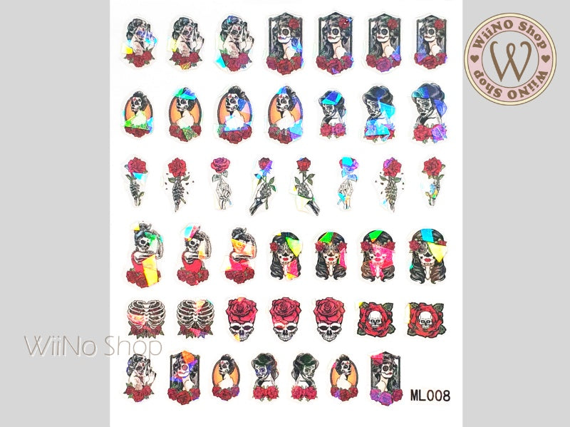 Holographic Skull Beauty Adhesive Nail Art Sticker - 1 pc (ML008)