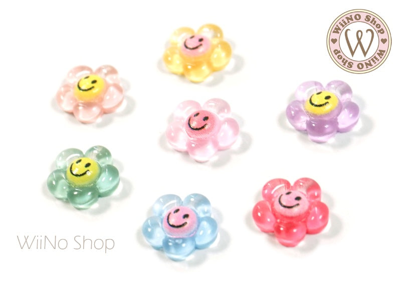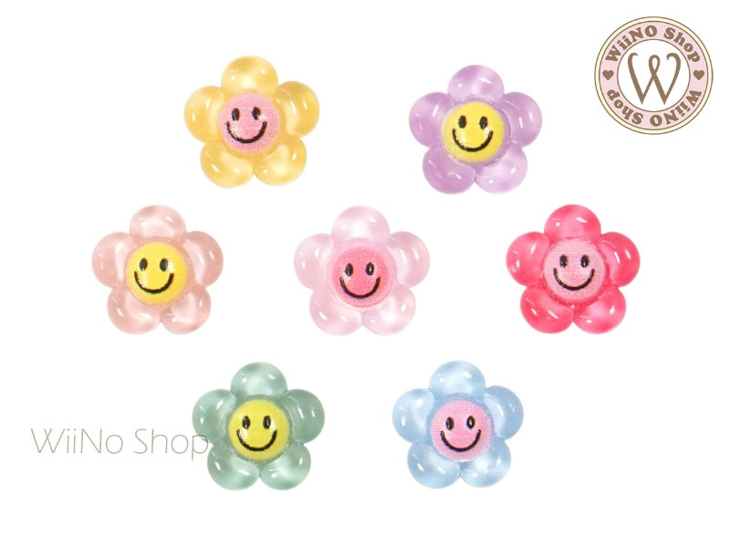 Smiley Face Flower Mix Color Nail Art Decorations - 5 pcs