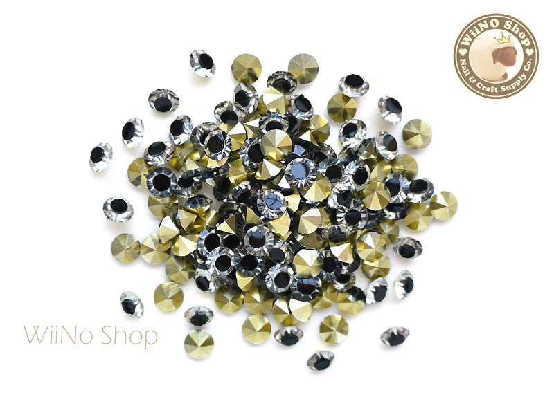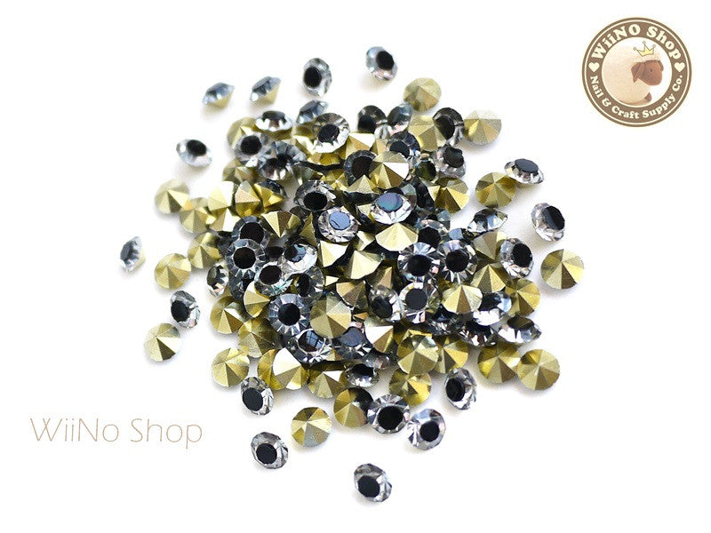ss20 Black Clear Two Tone Round Diamond Style 3D Point Back Acrylic Rhinestone - 25 pcs