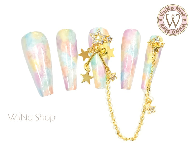 Star Crystal Cluster Nail Jewelry Charm with Chain - 1 pc