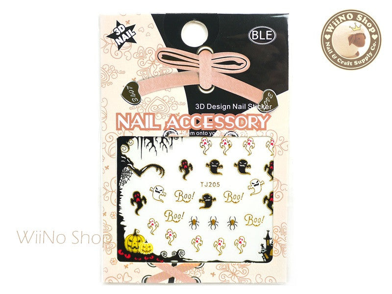 TJ205 Gold Halloween Ghost Adhesive Nail Art Sticker - 1 pc