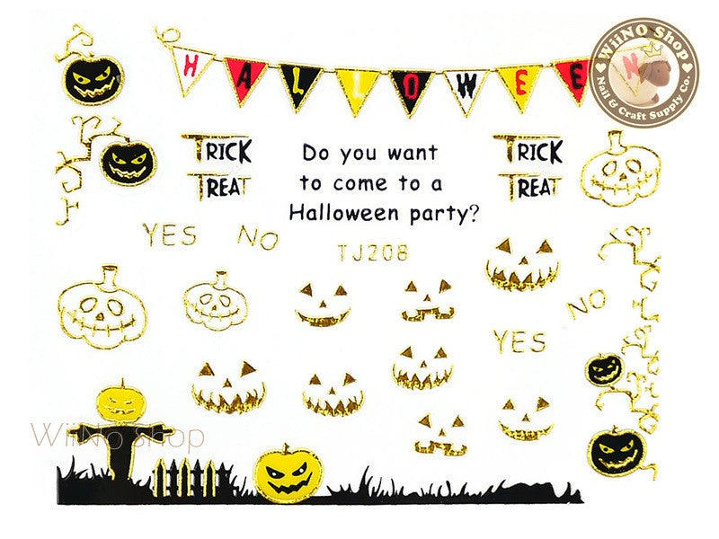 TJ208 Gold Halloween Ghost Adhesive Nail Art Sticker - 1 pc