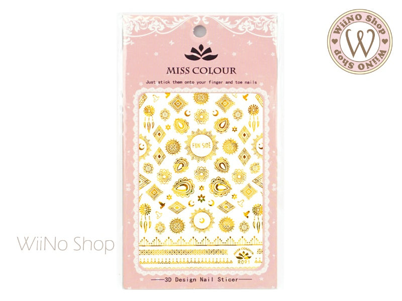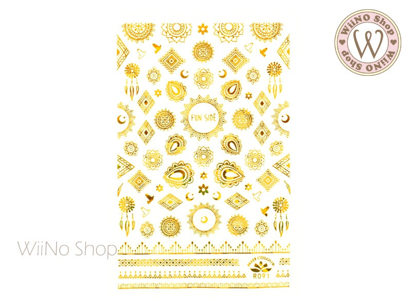 Tribal Pattern Gold Holographic Adhesive Nail Art Sticker - 1 pc (R091GH)