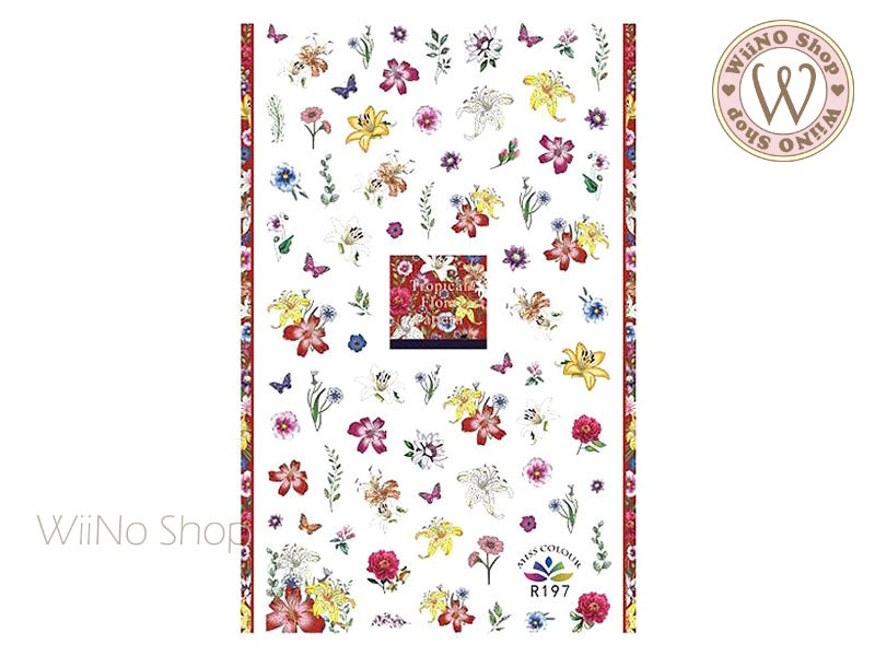 Tropical Floral Pattern Adhesive Nail Art Sticker - 1 pc (R197)