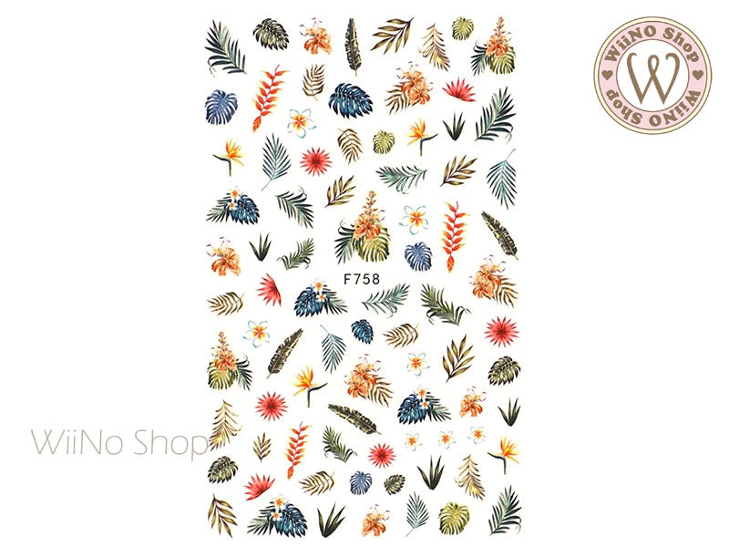 Tropical Leaves Flower Adhesive Nail Art Sticker - 1 pc (F758)