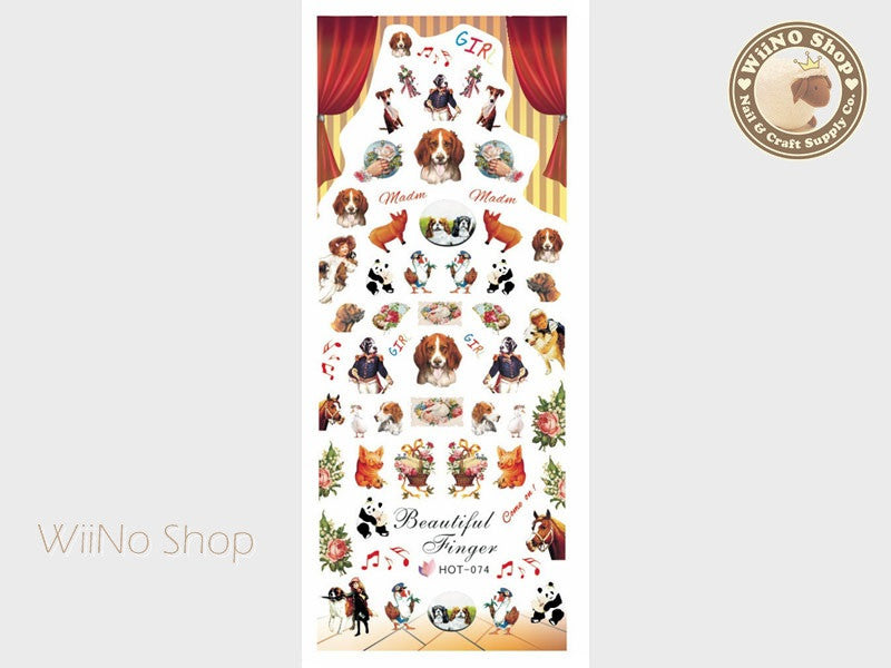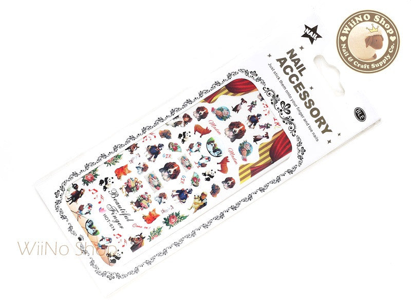 Vintage Dog Animal Carnival Water Slide Nail Art Decals - 1pc (HOT-074)