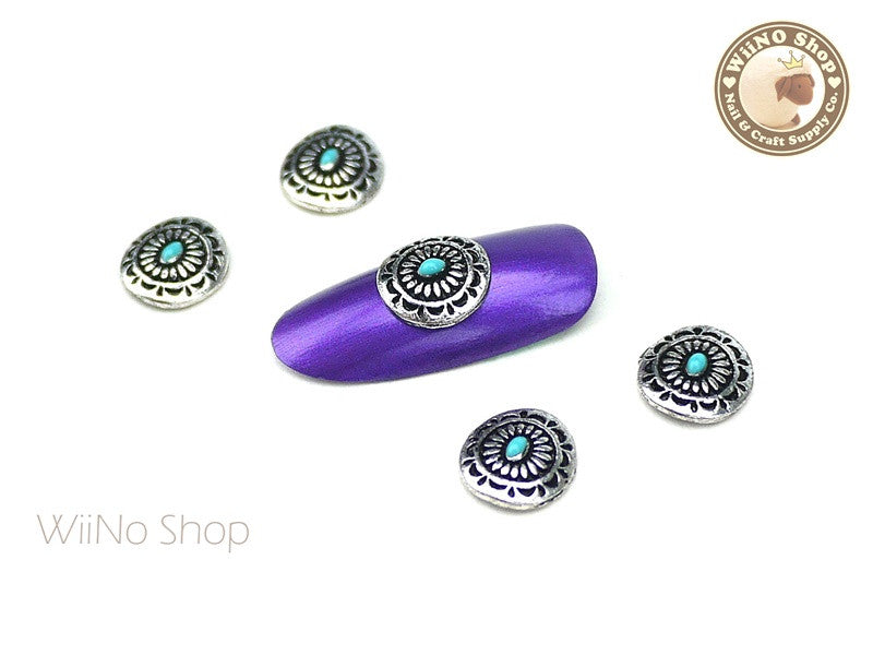 Vintage Silver Round Bohemian Nail Metal Charm - 2 pcs (BO01S)