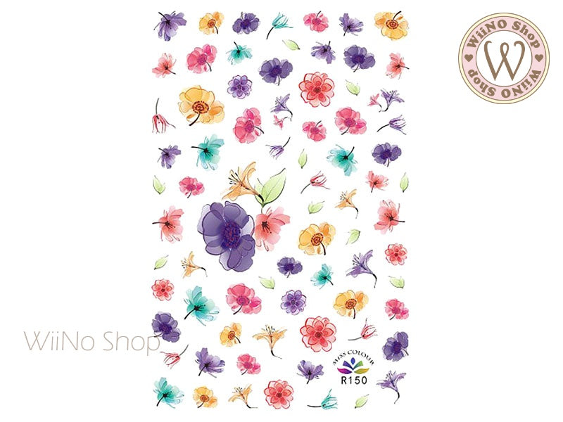 Watercolor Flower Adhesive Nail Art Sticker - 1 pc (R150)
