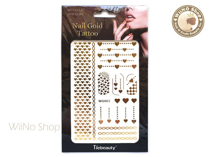 WG003 Gold Metallic Nail Jewelry Tattoos - 1 pc