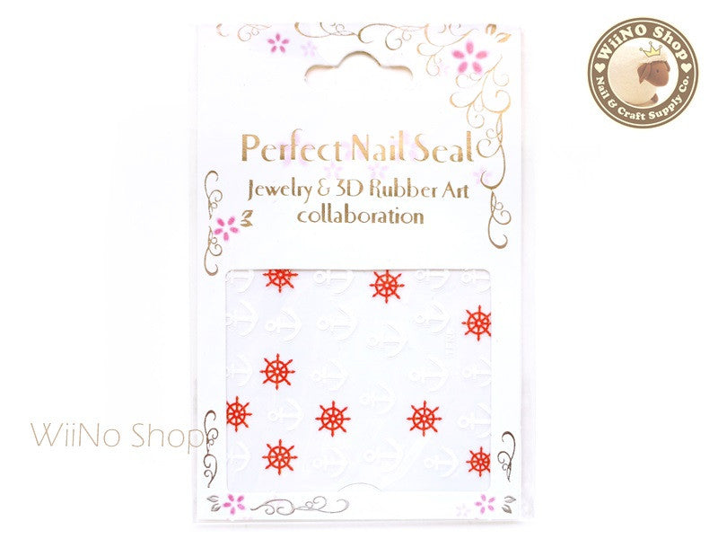 White Anchor Red Ship Wheel Adhesive Nail Sticker Nail Art - 1 pc (TFN6)