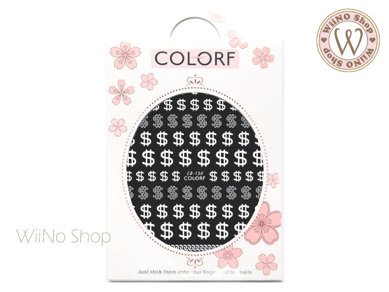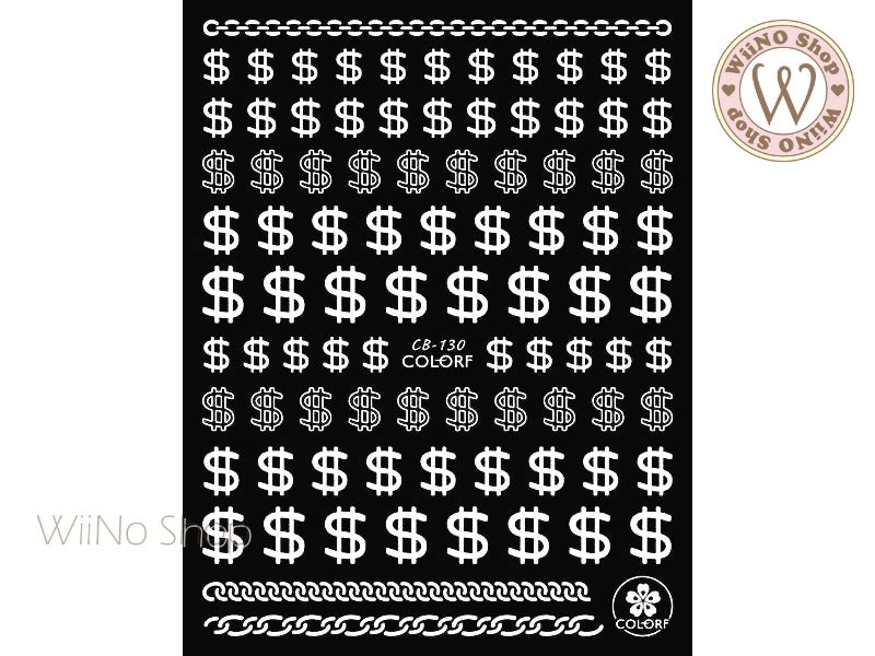 White Dollar Sign Adhesive Nail Art Sticker - 1 pc (CB-130W)