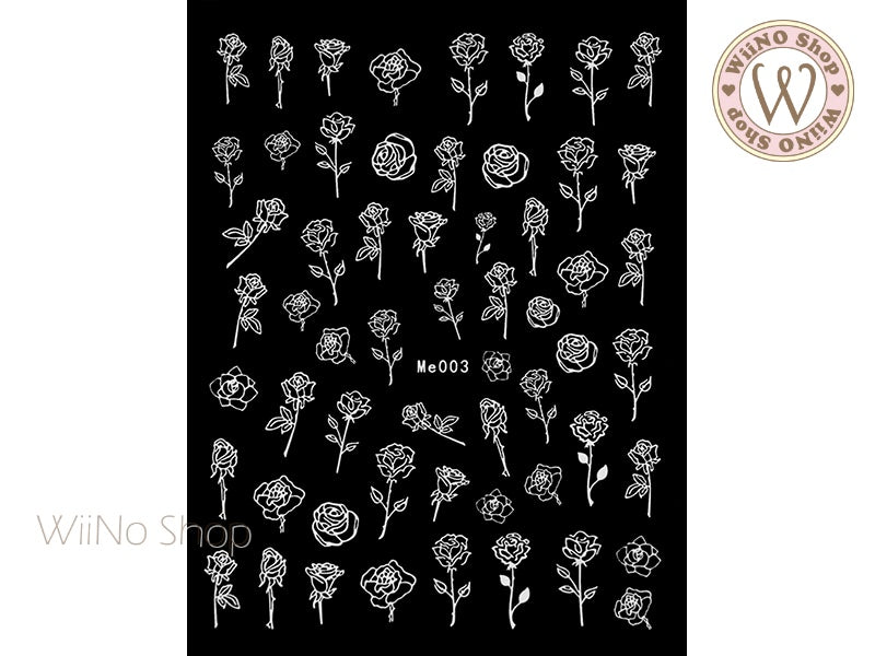 White Drawing Rose Adhesive Nail Art Sticker - 1 pc (Me003W)