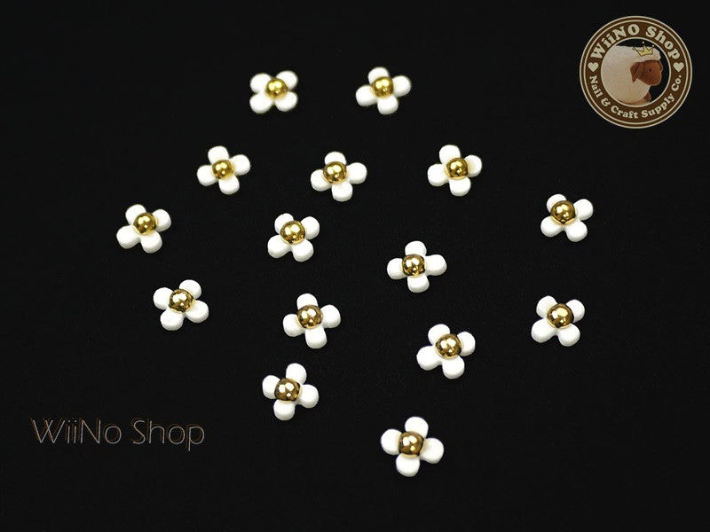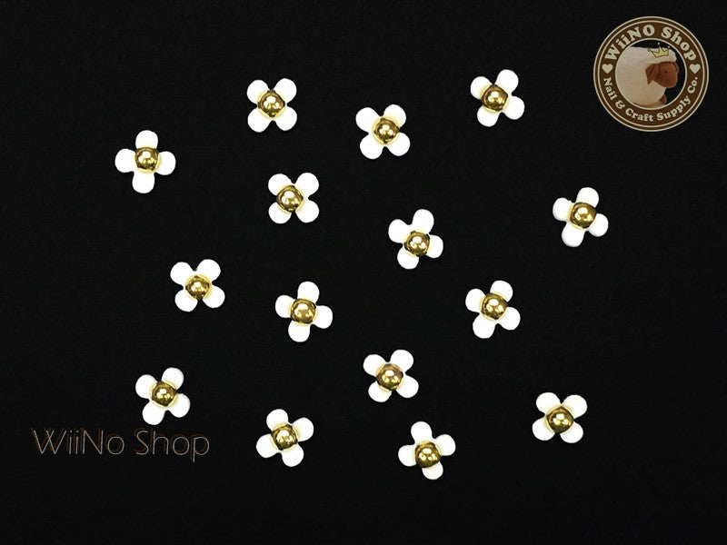 White Four Petal Flower Nail Charm Nail Art - 5 pcs