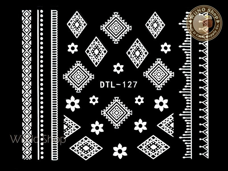 White Flower Tribal Adhesive Nail Art Sticker - 1 pc (DTL-127W)