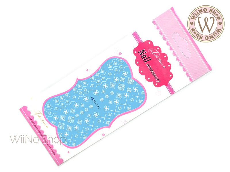 White Geometric Floral Pattern Water Slide Nail Art Decals - 1 pc (DS-297)