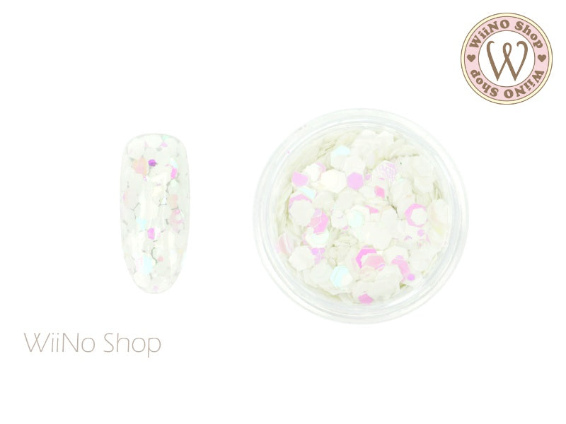 White Dream Hexagon Mix Sizes Glitter (TH02)