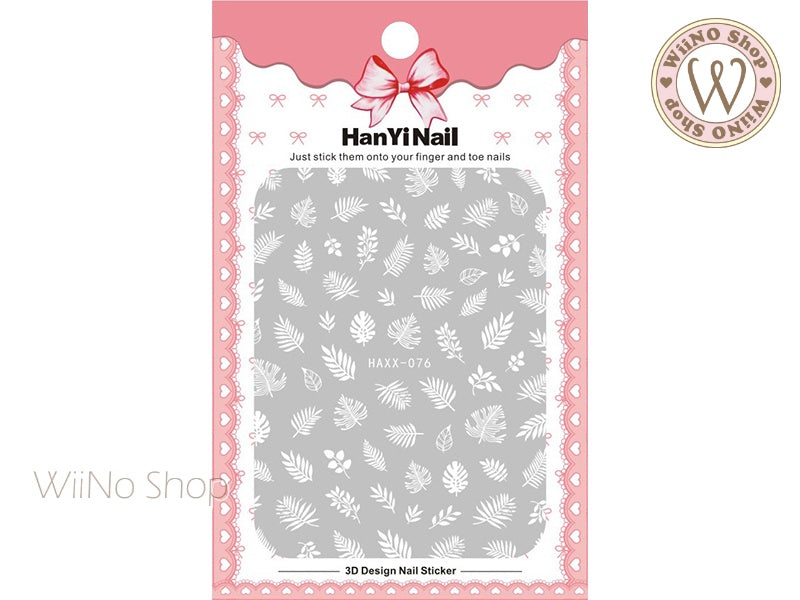 White Leaves Adhesive Nail Art Sticker - 1 pc (HAXX-076)
