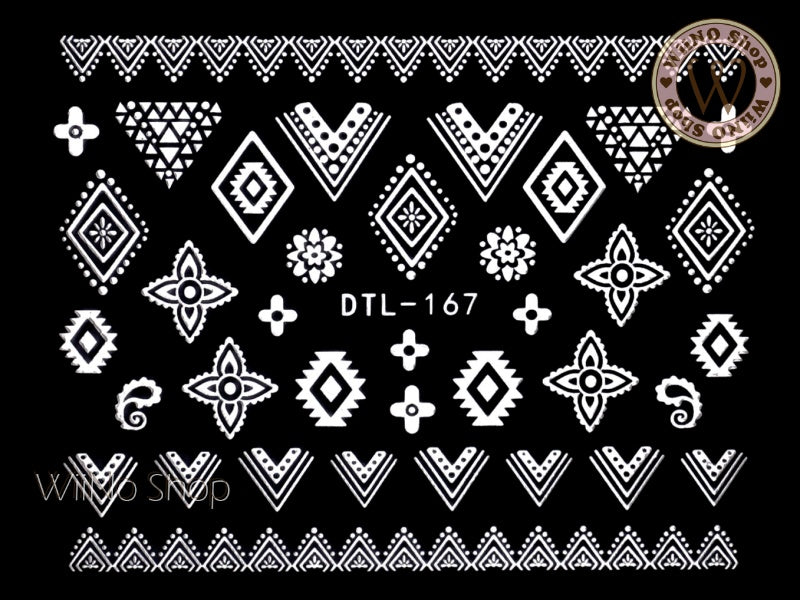 White Tribal Lace Pattern Nail Art Sticker - 1 pc (DTL-167W)