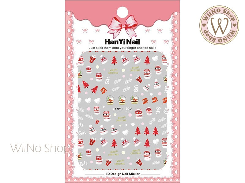 Winter Christmas Beanie Gloves Adhesive Nail Art Sticker - 1 pc (HY-352)