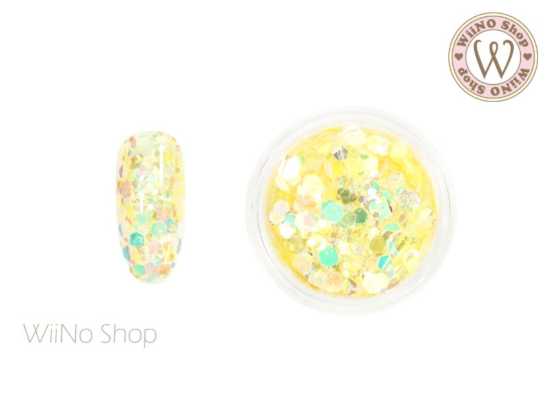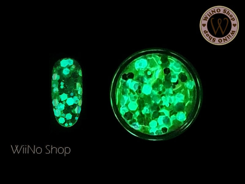 Yellow Glow in The Dark Hexagon Mix with Glitter Dust (GD03)